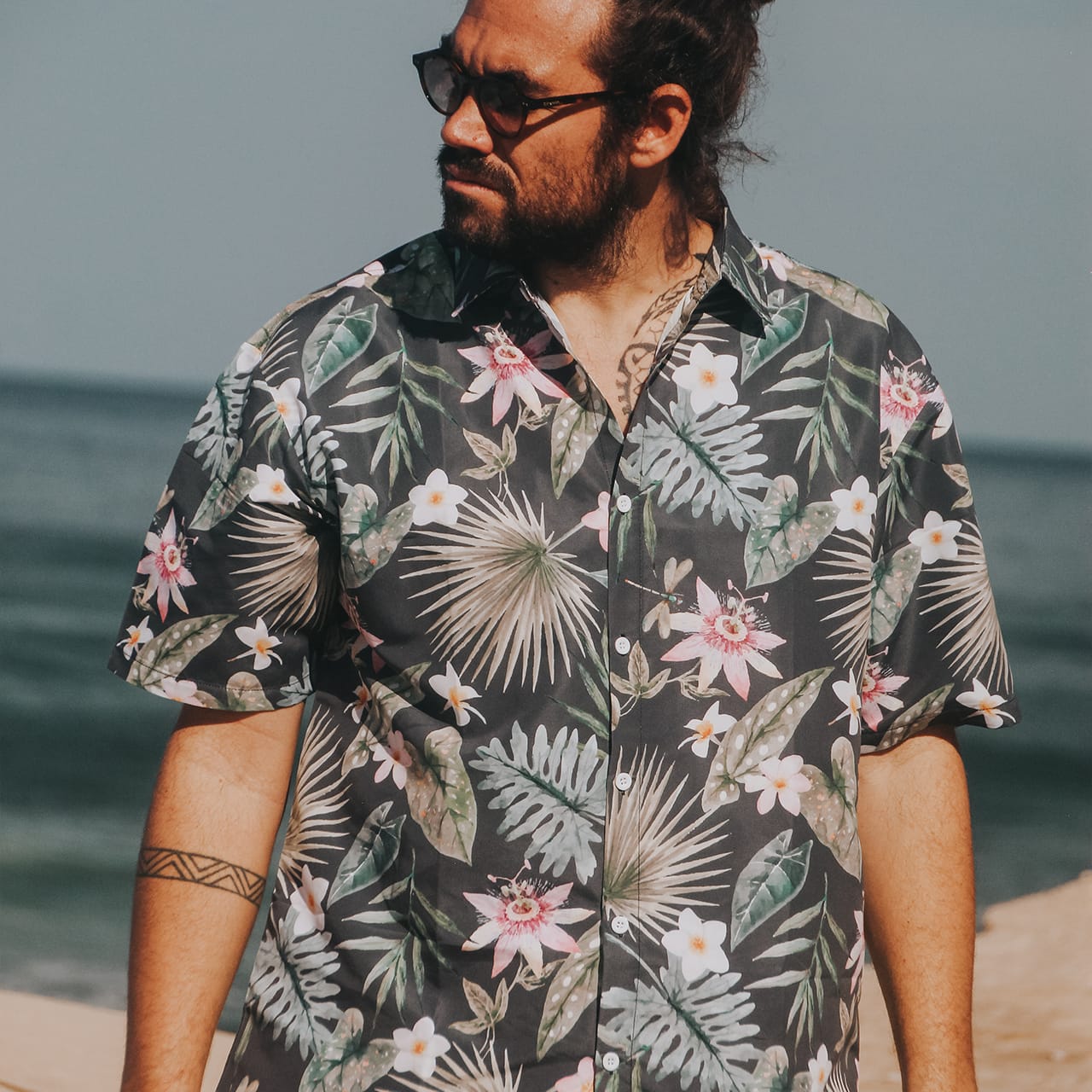 The Kapu Makai Hawaiian surf shirt is made from 88% polyester and 12% spandex, offering a smooth, breathable feel. Handmade for each order, this classic fit shirt is perfect for laid-back days.